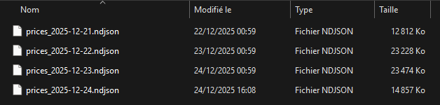 Because of this limitation, the only reliable way to backtest this strategy was to create my own historical dataset by recording live best-ask prices while the bot was running.