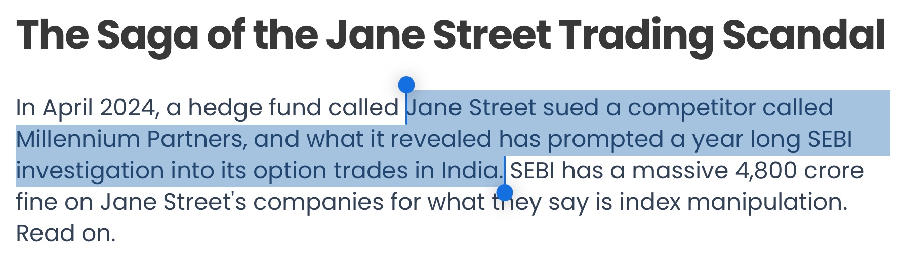 The Indian stock market case is the cleanest documented example of how Jane Street works. They ran something similar to a 10 AM slam algo in india and made $4.23 billion, but got busted and temporarily banned by the Securities and Exchange Board of India.