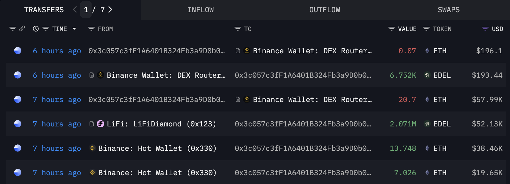 Over the past 7 hours, two wallets bought 4.08M $EDEL($133K) in total.