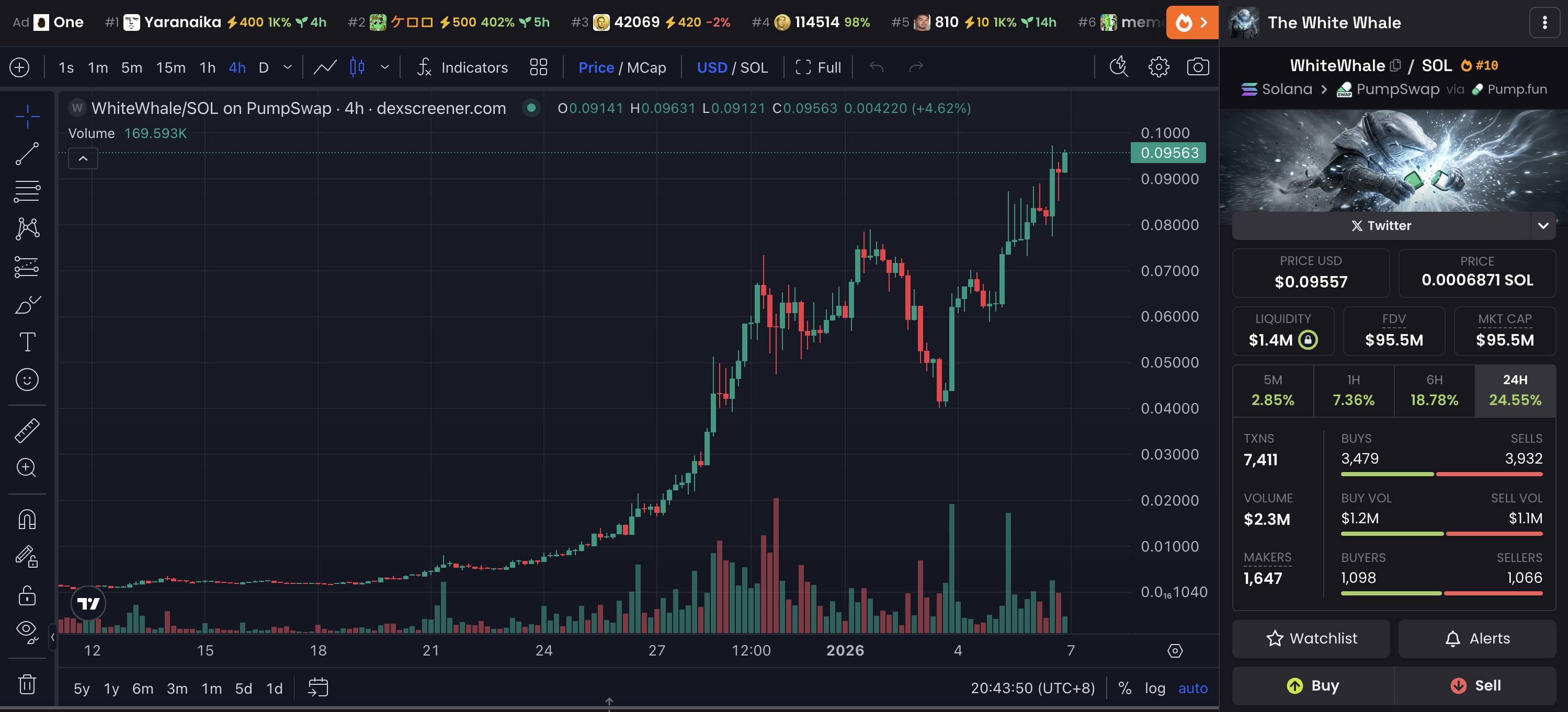 $WhiteWhale surged past a $95M market cap after its Bybit spot listing, with one trader turning $343 into $773K — a 2,253× return.