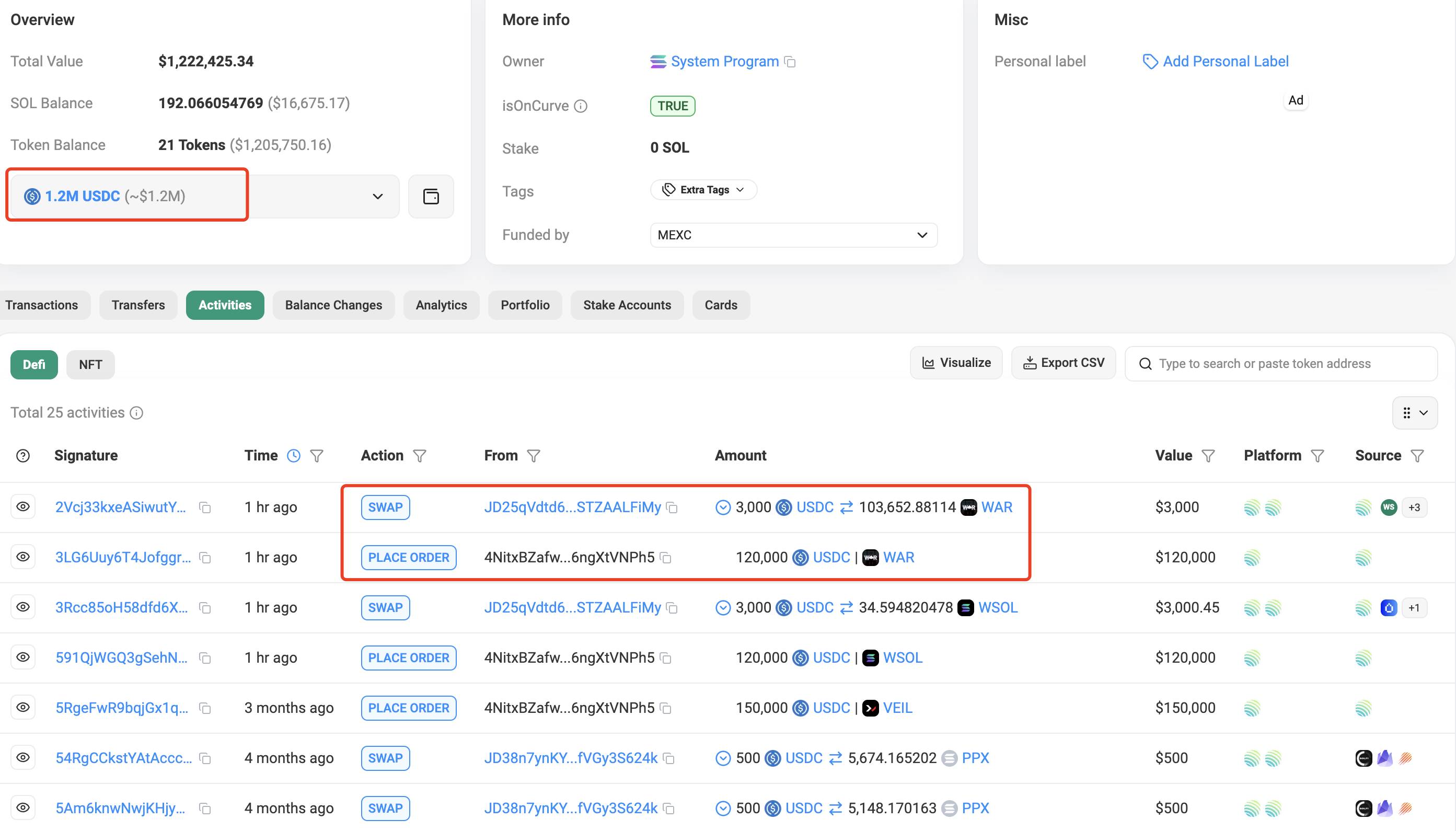 A whale(4NitxB) holding 1.2M $USDC came back after 3 months of inactivity and started buying $WAR using a DCA strategy.