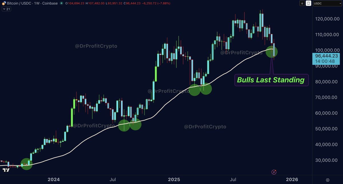 It’s very important to understand the chart below and the significance of the golden line, which is the EMA50. I predicted the breakdown of this line back in September when I said that BTC would fall below 100k and break beneath the golden line. This chart is crucial because it indicates whether BTC is in a bull or bear market. Historically, every time BTC touched this area, it closed the weekly candle right above it and always bounced afterwards. Throughout the entire cycle since 2024, Bitcoin consistently closed above this level, confirming the bull market we were in. Now it has dropped below it exactly as I predicted, and confirming the bearish sentiment. This chart is extremely important for understanding the concept of the death cross and why many people are mistaken when calling the current death cross a bullish event.