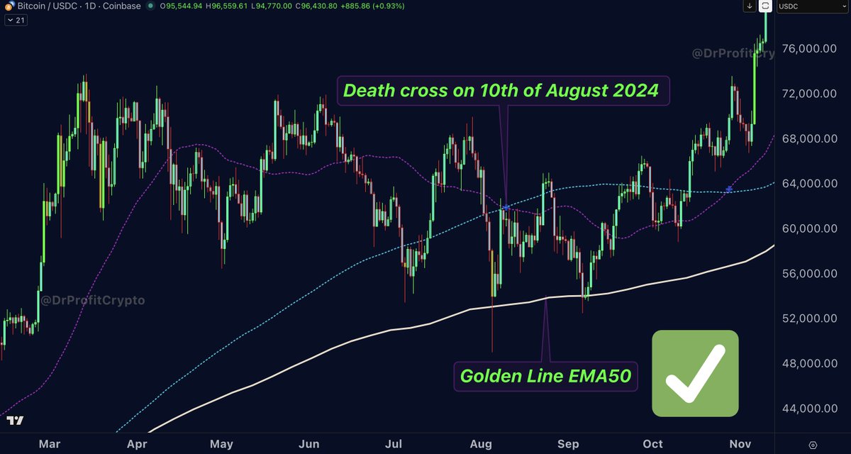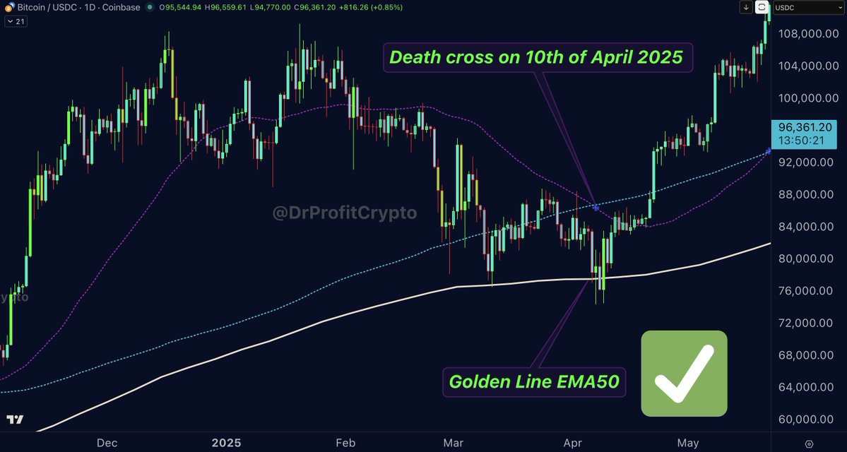 The same applies for the Death cross that happened in 2023, Bitcoin always respected the golden line. Now lets have a look what happened today: