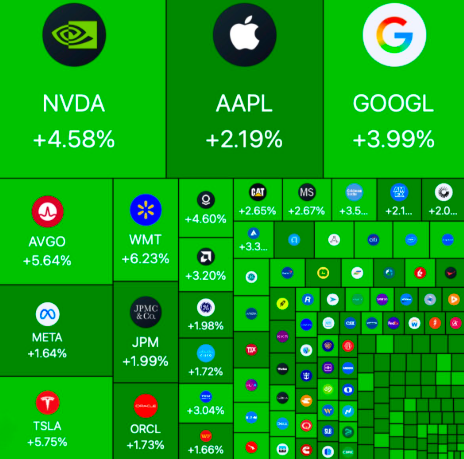 After Nvidia, $NVDA, crushed earnings reporting record quarterly revenue of $55 billion, stocks were deep green.