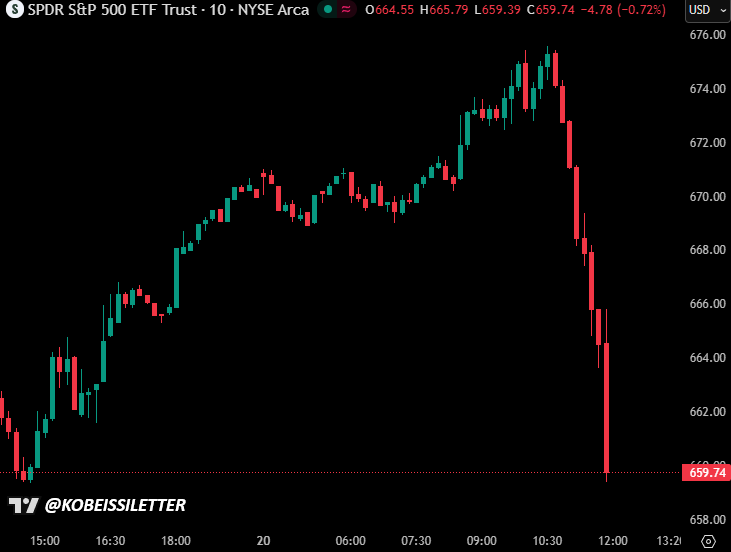 Between 10:30 AM ET and the 11:20 AM ET news, the S&P 500 gave up ~80 points of its gain.
