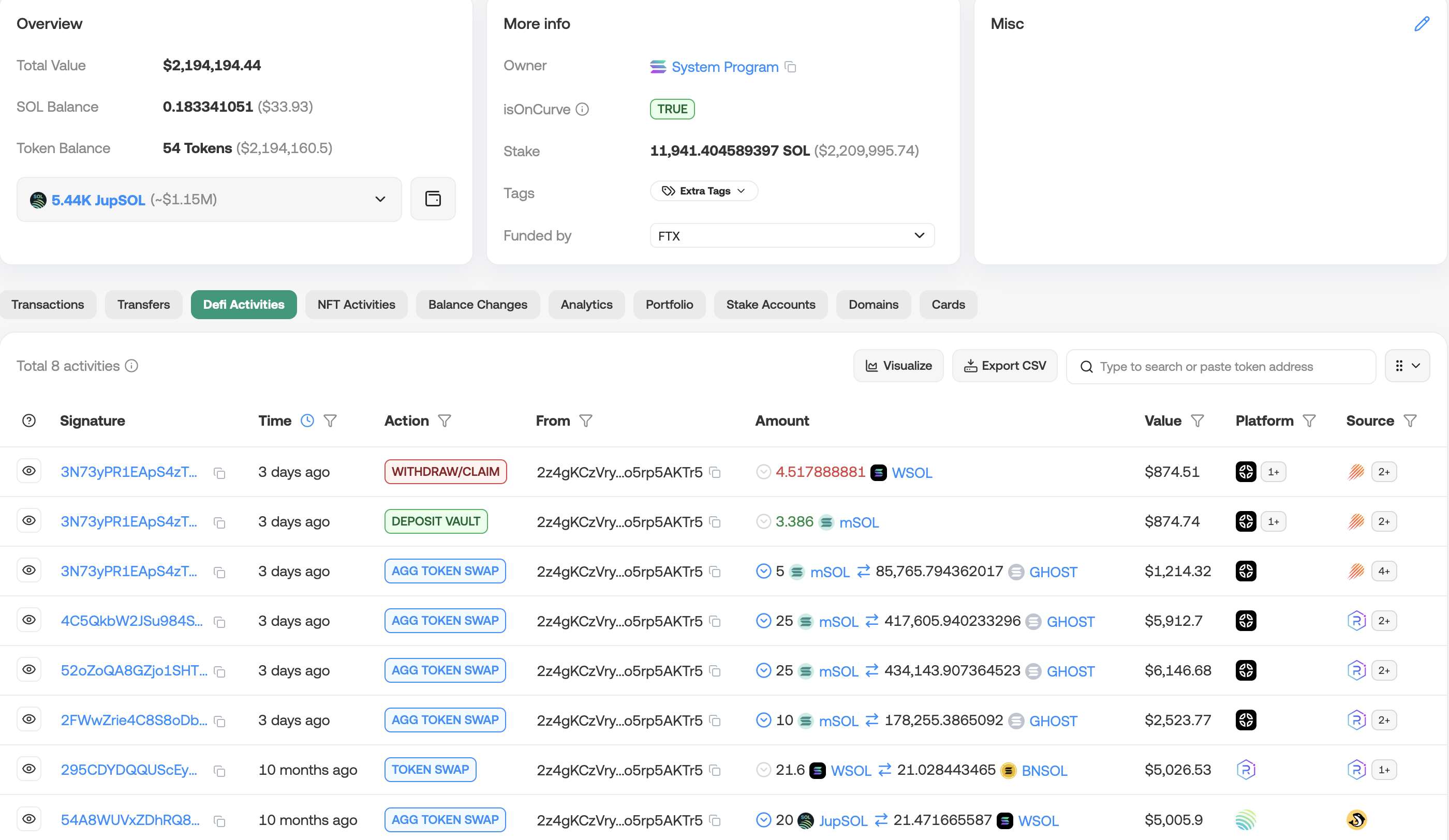 https://solscan.io/account/2z4gKCzVry2DK1Vq66mfvbKcdNsbgz9hnVo5rp5AKTr5#defiactivities