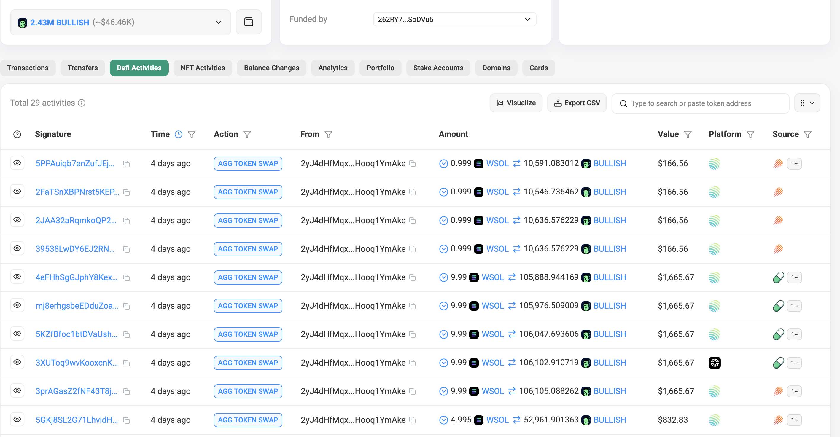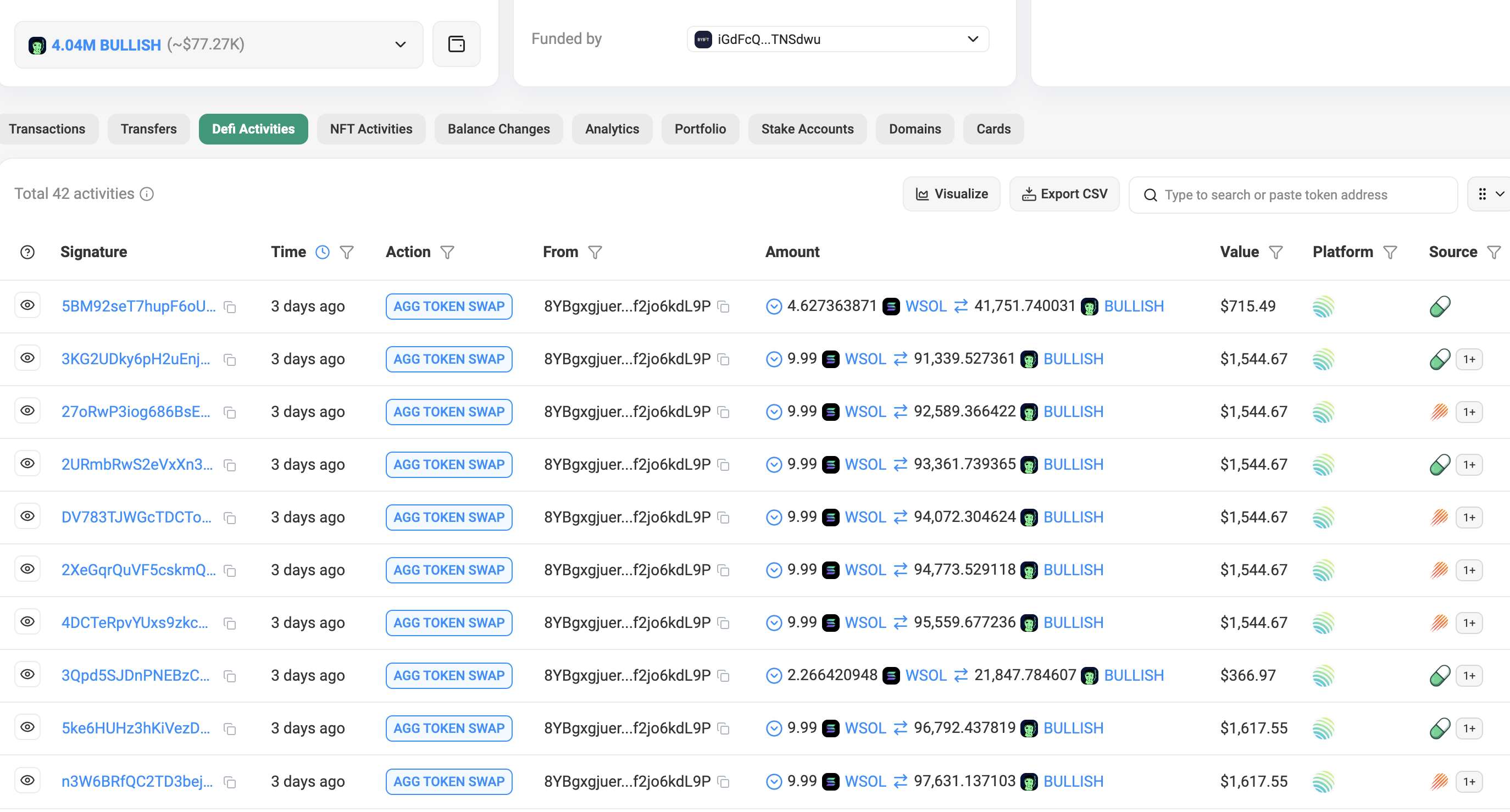 https://solscan.io/account/8YBgxgjuerVFG8FEi1SYYgikaqHZS68pgYf2jo6kdL9P#defiactivities