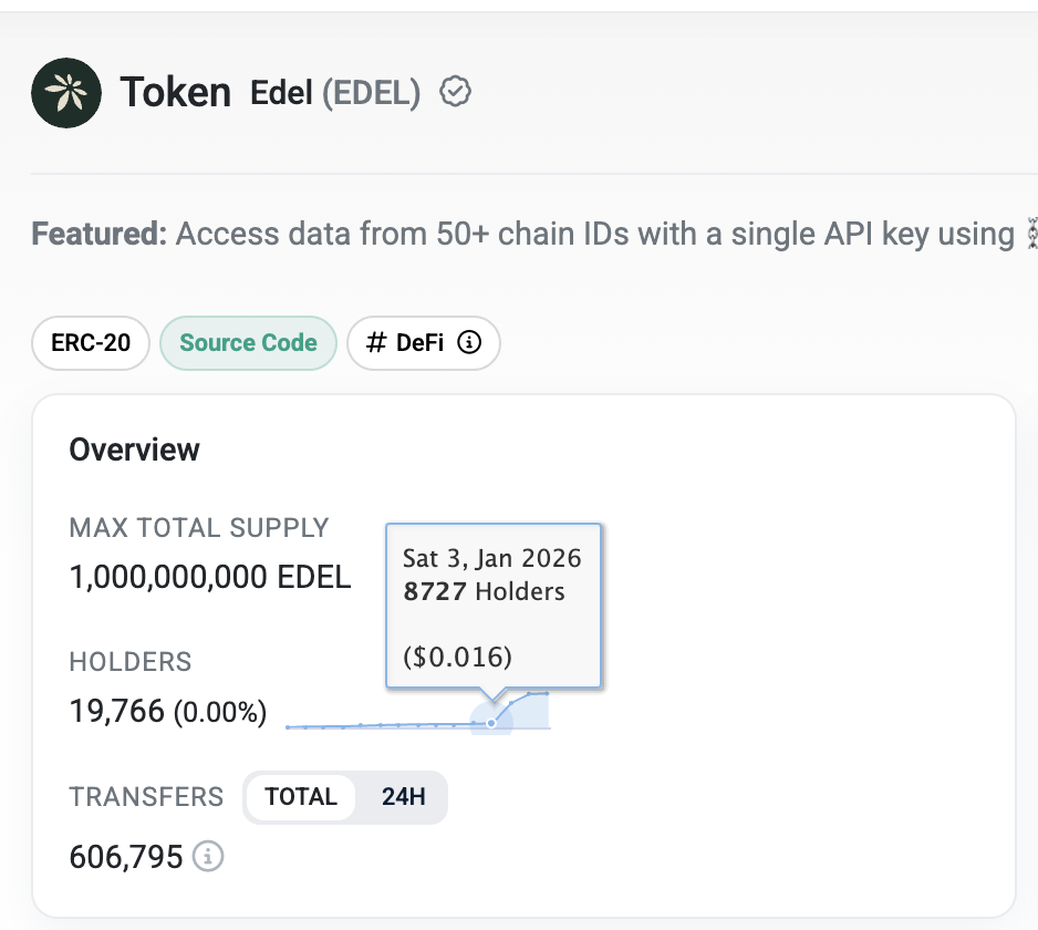 Meanwhile, $EDEL holders surged from 8,727 to 19,766 in just 3 days, a 126% increase.