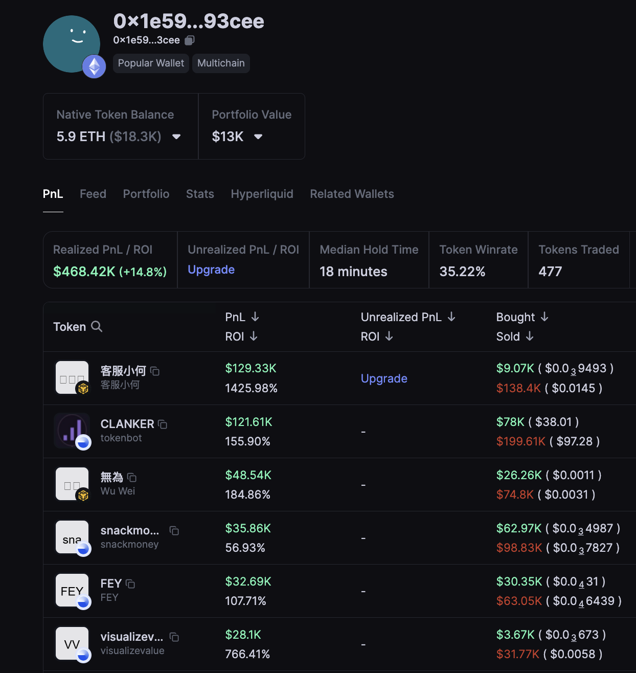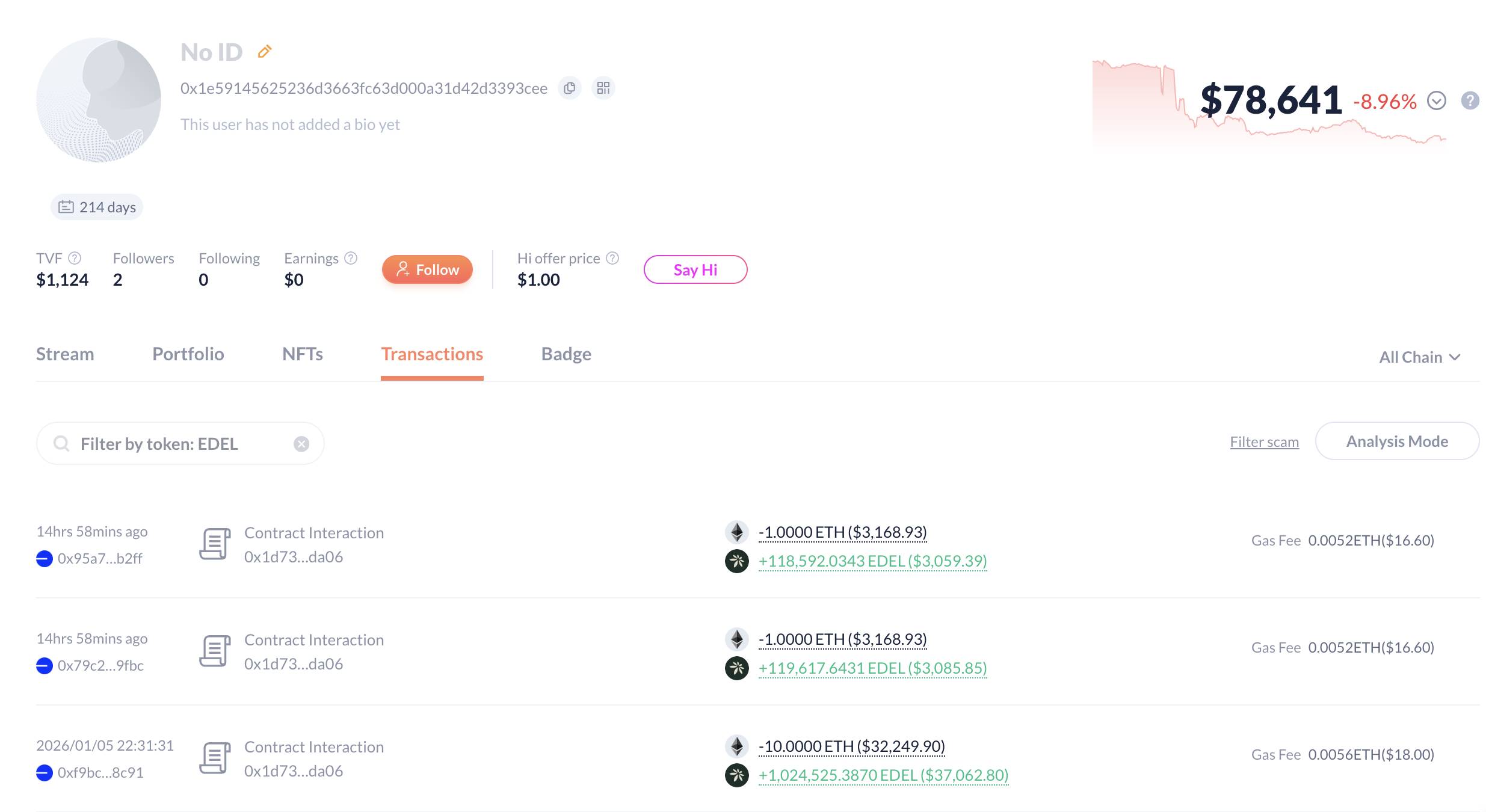 A wallet with $468K in profits spent 12 $ETH($38K) to buy 1.26M $EDEL over the past 2 days.