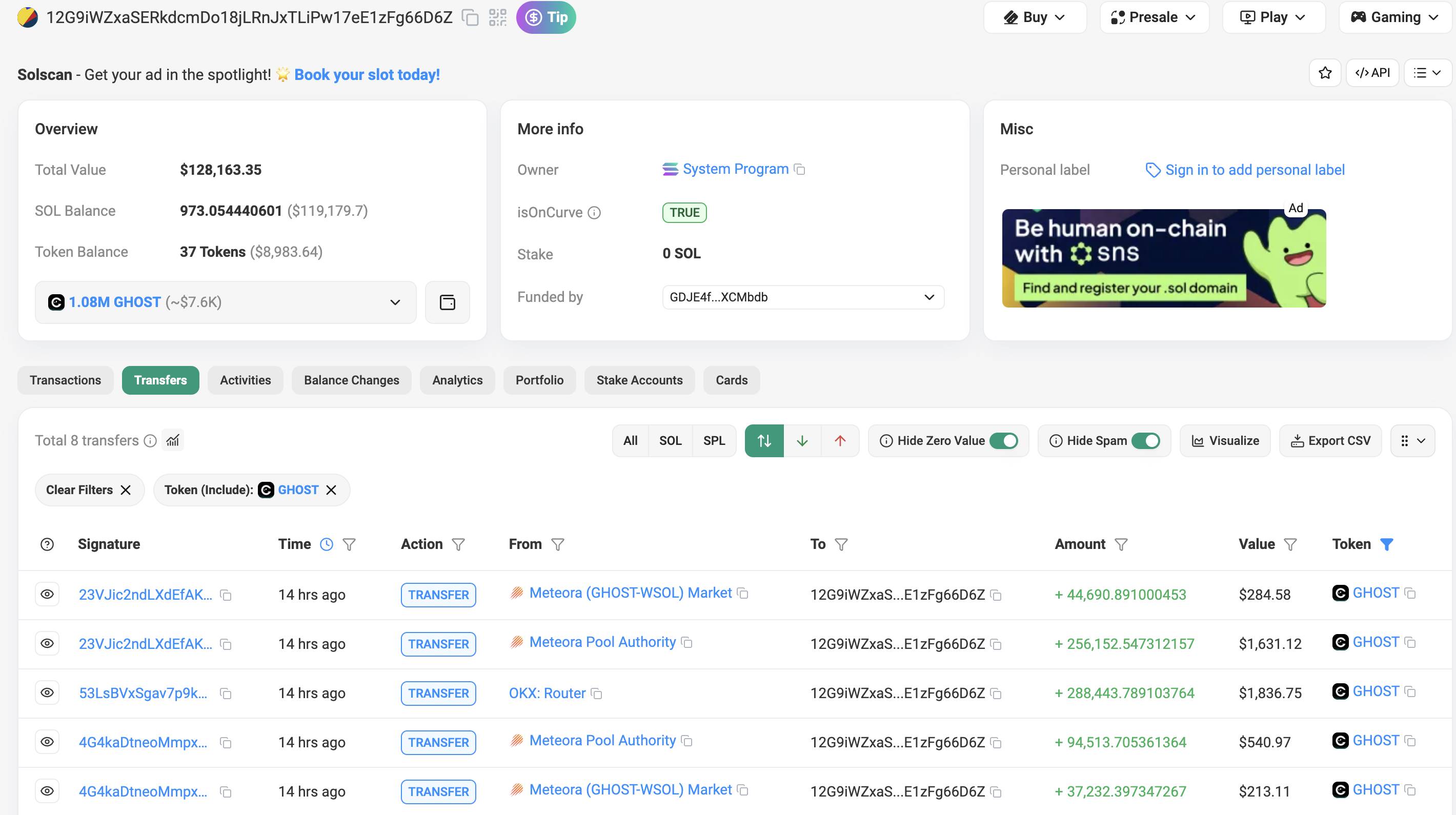 https://solscan.io/account/12G9iWZxaSERkdcmDo18jLRnJxTLiPw17eE1zFg66D6Z#transfers