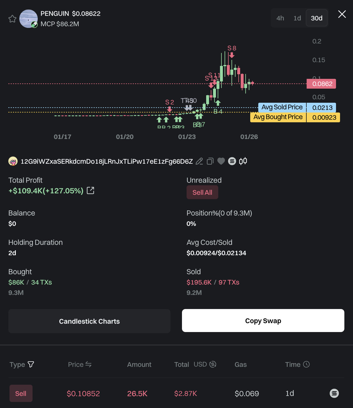 Trader 12G9iW sold all $PENGUIN yesterday, locking in a profit of $109.4K.