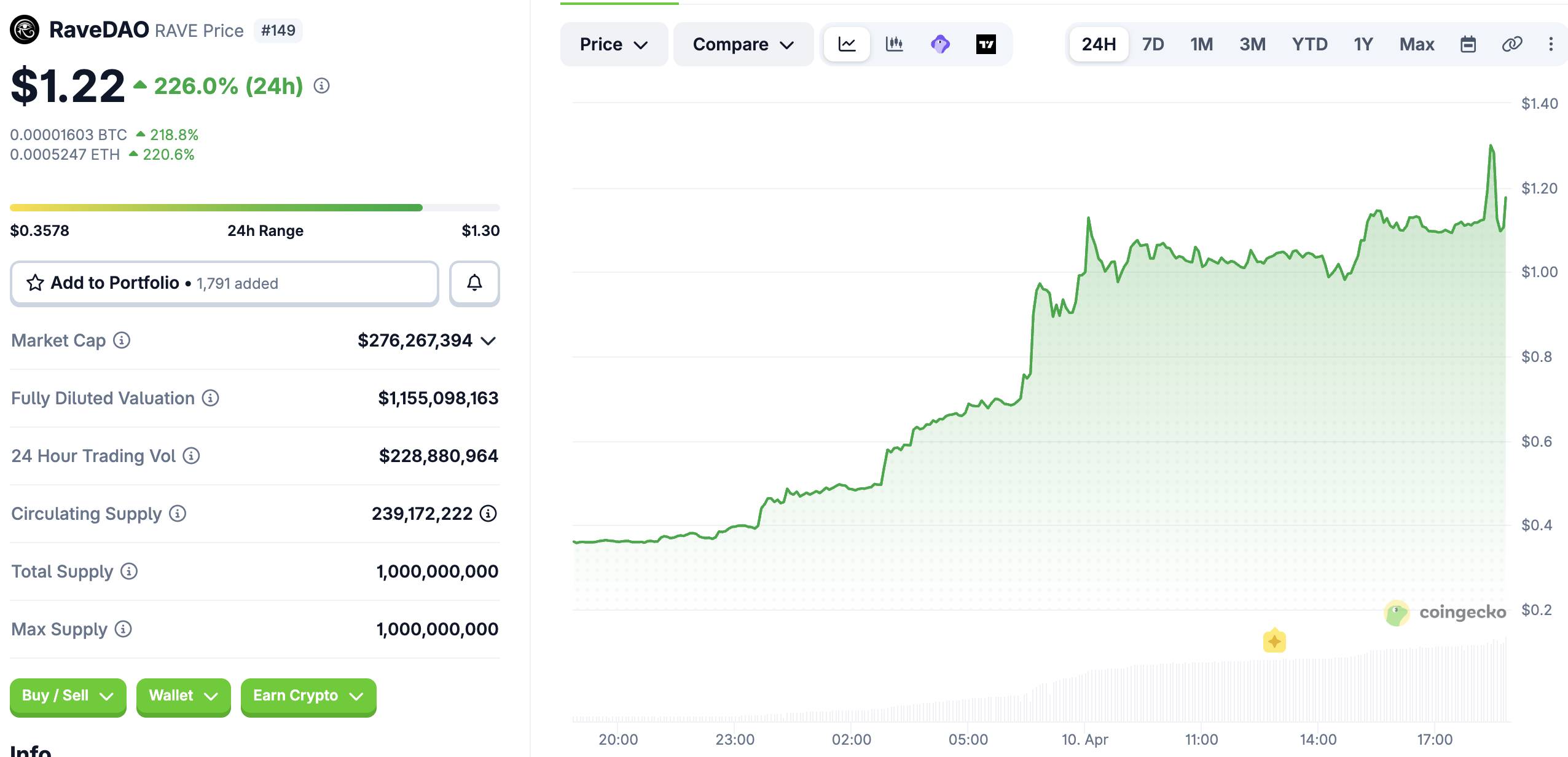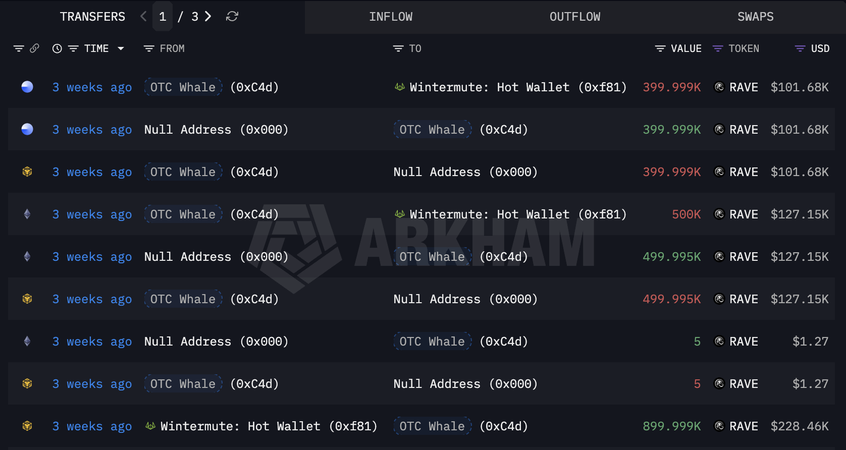 OTC Whale Sold $RAVE at Break-Even — Missed $870K Gain as $RAVE Surges 226%