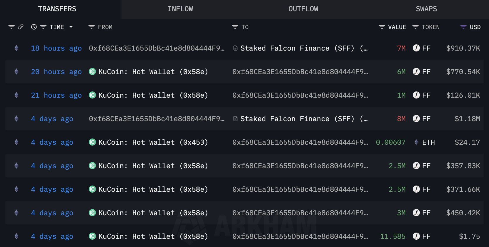 0xf68C withdrew another 7M $FF($910K) from #KuCoin 20 hours ago and staked it — now totaling 15M $FF($2.08M) staked.
