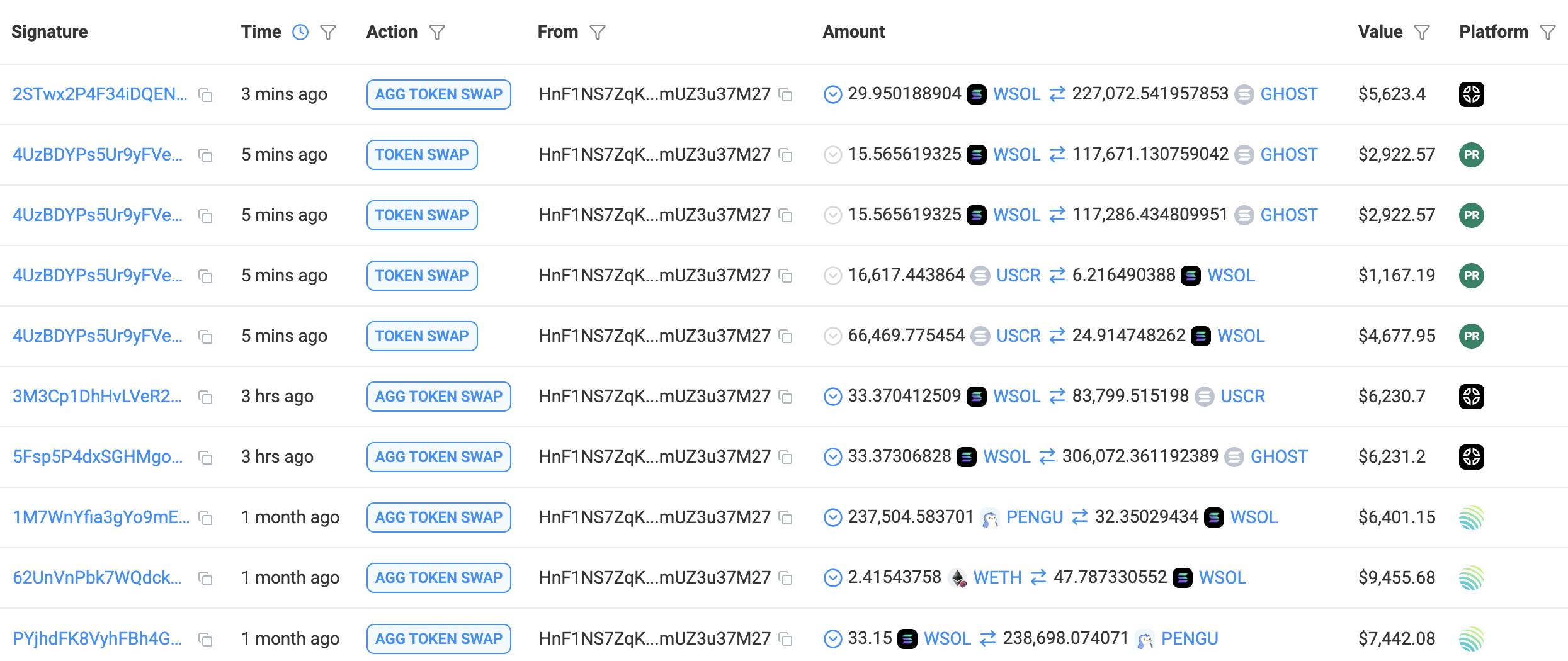 https://solscan.io/account/HnF1NS7ZqKjMnPtsmCfJxZKfrwe7Sajw3cmUZ3u37M27#defiactivities