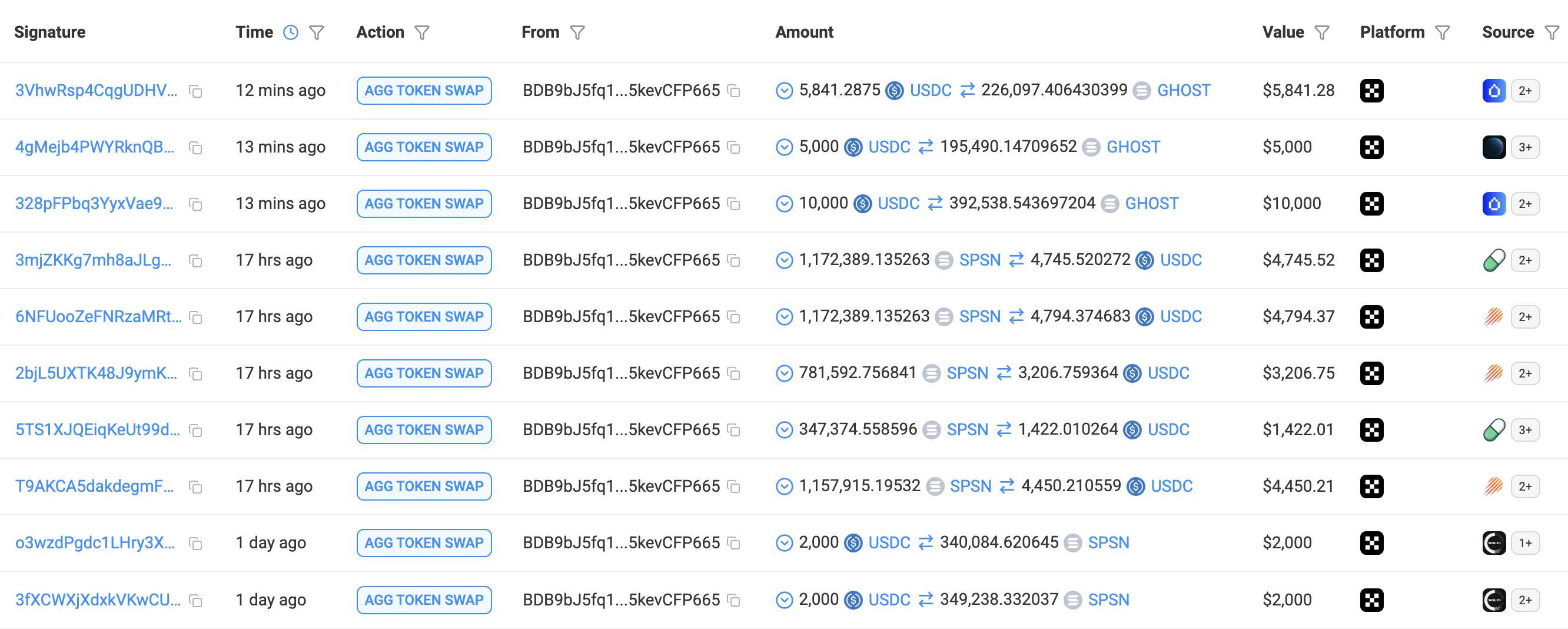 https://solscan.io/account/BDB9bJ5fq16bRKsY1qg4ZNp2tgyPhy45bx5kevCFP665#defiactivities
