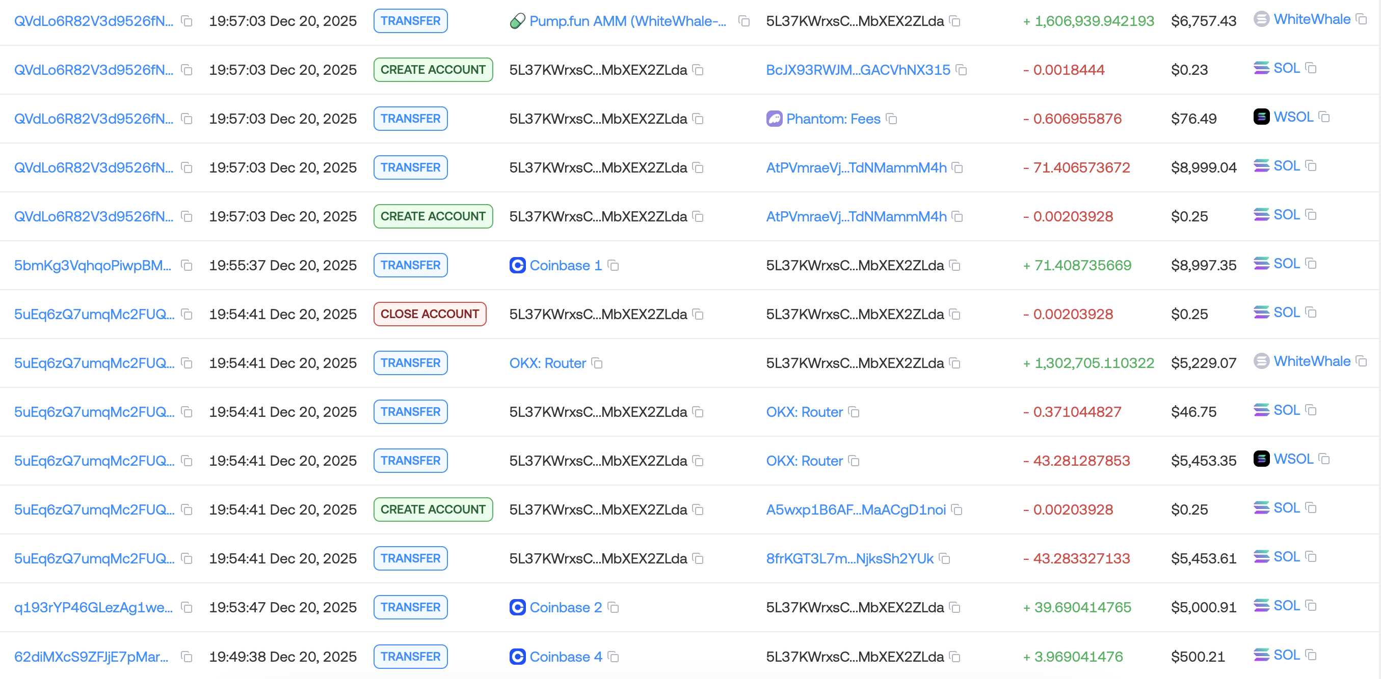 After @WhiteWhaleMeme announced a $100K USDC giveaway, a new wallet withdrew 240 SOL($30.2K) from Coinbase to buy 6.31M $WhiteWhale.